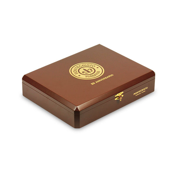 蒙特 80 周年是 2015 年推出的紀念版雪茄,旨在慶祝蒙特品牌創立 80 週年。作為限量發行的特別版,它在收藏家和蒙特愛好者中具有極高的收藏價值,被視為”蒙特歷史的里程碑”。這款雪茄的風味豐富而複雜,前段以雪松木的清香和烤煙草的醇厚味道開場,隨後逐漸浮現出可可和微妙的草本植物香氣。中段風味愈發複雜,除了持續的木質調,還會出現咖啡豆、皮革以及淡淡的堅果風味,同時辛辣感略有提升,帶來恰到好處的苦味以平衡整體口感。後段風味達到高潮,黑巧克力的微苦、鹹皮革以及白胡椒的辛香交織在一起,餘味悠長而滿足,帶有蒙特經典的深邃木質回韻。
